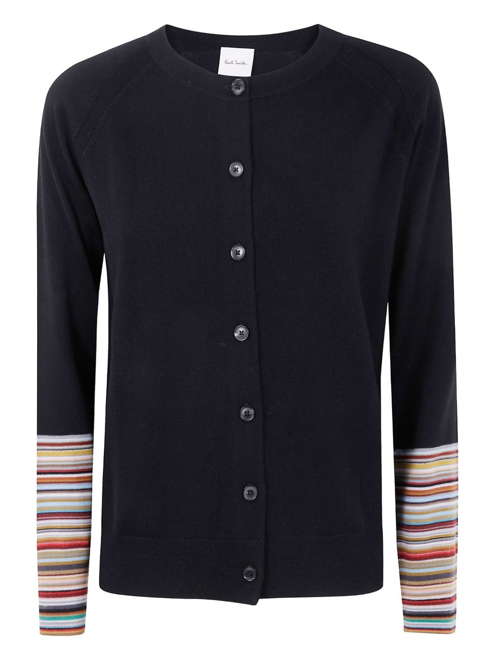 striped-cuff cardigan Highlights - Black - Long sleeves - Button fastening - Striped cuffs Imported Composition Merino 100% Washing instructions Read Manufacturer Guidelines