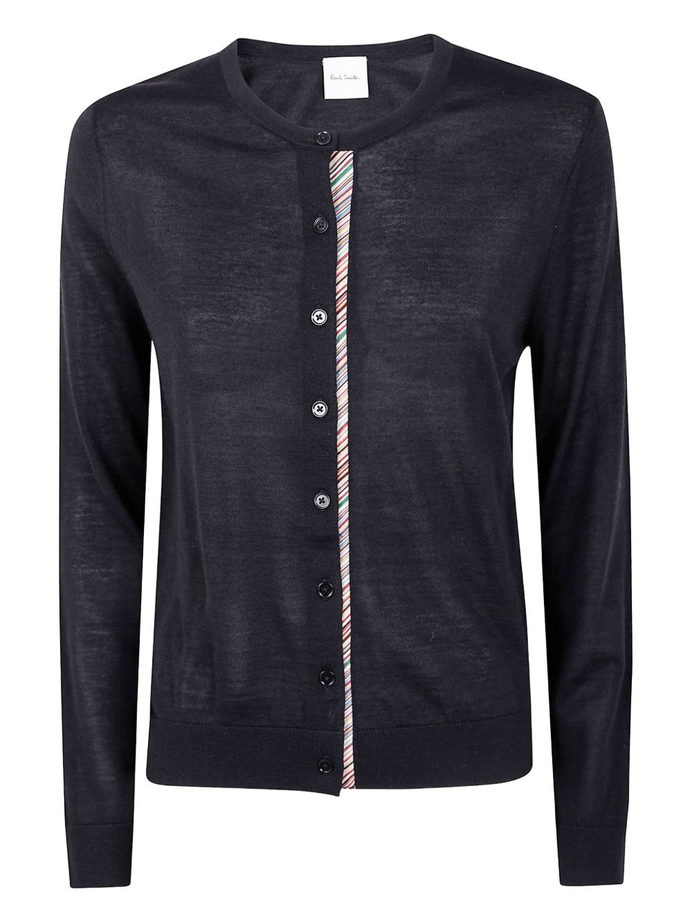 striped-detail wool cardigan Highlights - Black - Wool - Long sleeves - Button fastening - Round neck Imported Composition Wool 100% Washing instructions Read Manufacturer Guidelines