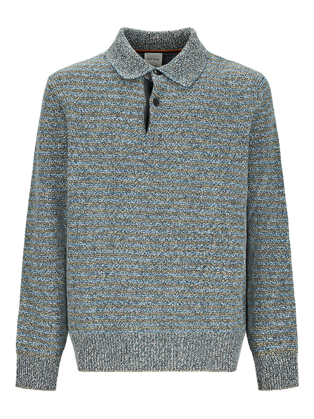 striped polo-neck sweater Highlights - Blue - Striped pattern - Polo neck - Long sleeves - Button fastening - Ribbed hem Made in Italy Composition Wool 100% Washing instructions Read Manufacturer Guidelines