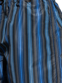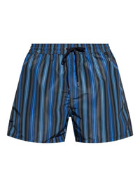 striped swim shorts Highlights - Teal blue - Elasticated drawstring waistband - Two side slit pockets - Rear welt pocket - Be mindful to try on swimwear over your own garments. Imported Composition Recycled Polyester 100% Washing instructions Read Manufacturer Guidelines