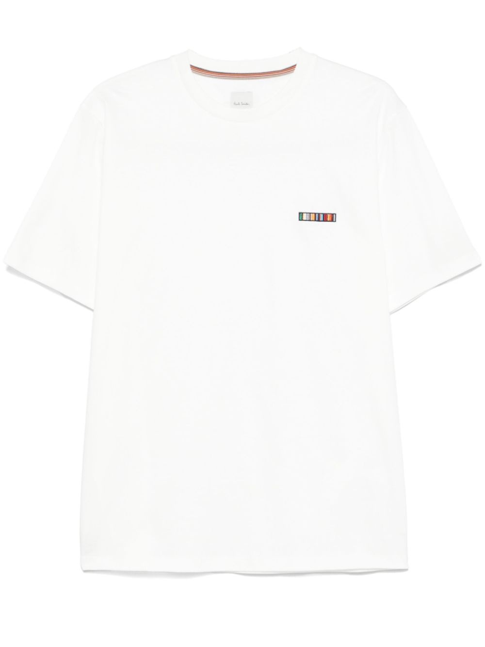 striped T-shirt Highlights - White - Crew neck - Short sleeves - Embroidered logo to the rear Imported Composition Cotton 100% SIZE & FIT FittingInformation Designed for a relaxed fit, this piece allows for comfort and movement when worn Made from a midweight non-stretch fabric, this piece offers minimal elasticity when worn