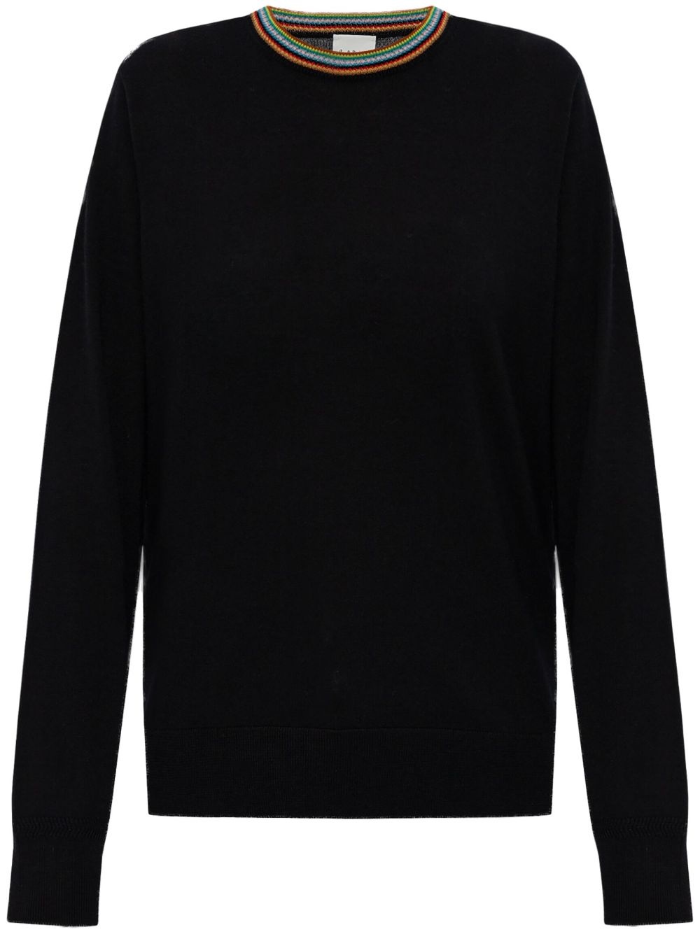 striped-trim sweater Highlights - Black - Crew neck - Long sleeves - Straight hem Imported Composition Merino 100% Washing instructions Read Manufacturer Guidelines