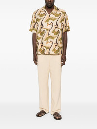 swan-print shirt Highlights - Beige and green - Swan pattern - Button fastening - Short sleeves - Camp collar Made in Italy Composition Viscose 90%, Polyamide 10% SIZE & FIT Model measurements Height 6 ft 0 in(1.84 m) Bust/Chest 35.82 in(91 cm) Hips 37 in(94 cm) Waist 28.34 in(72 cm) Washing instructions Machine Wash