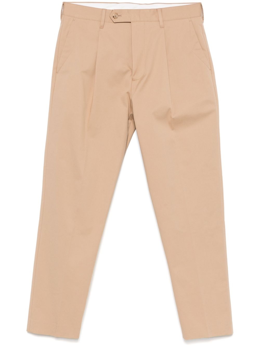 tapered trousers Highlights - Beige - Concealed fly and button fastening - Belt loops - Two side inset pockets - Rear jetted pocket Imported Composition Lining: Cotton 70%, Polyamide 30% Outer: Cotton 96%, Spandex/Elastane 4% SIZE & FIT FittingInformation Designed for a tapered leg, offering a loose unrestricted fit over the leg with a closer fit towards the ankle Made from a midweight non-stretch fabric