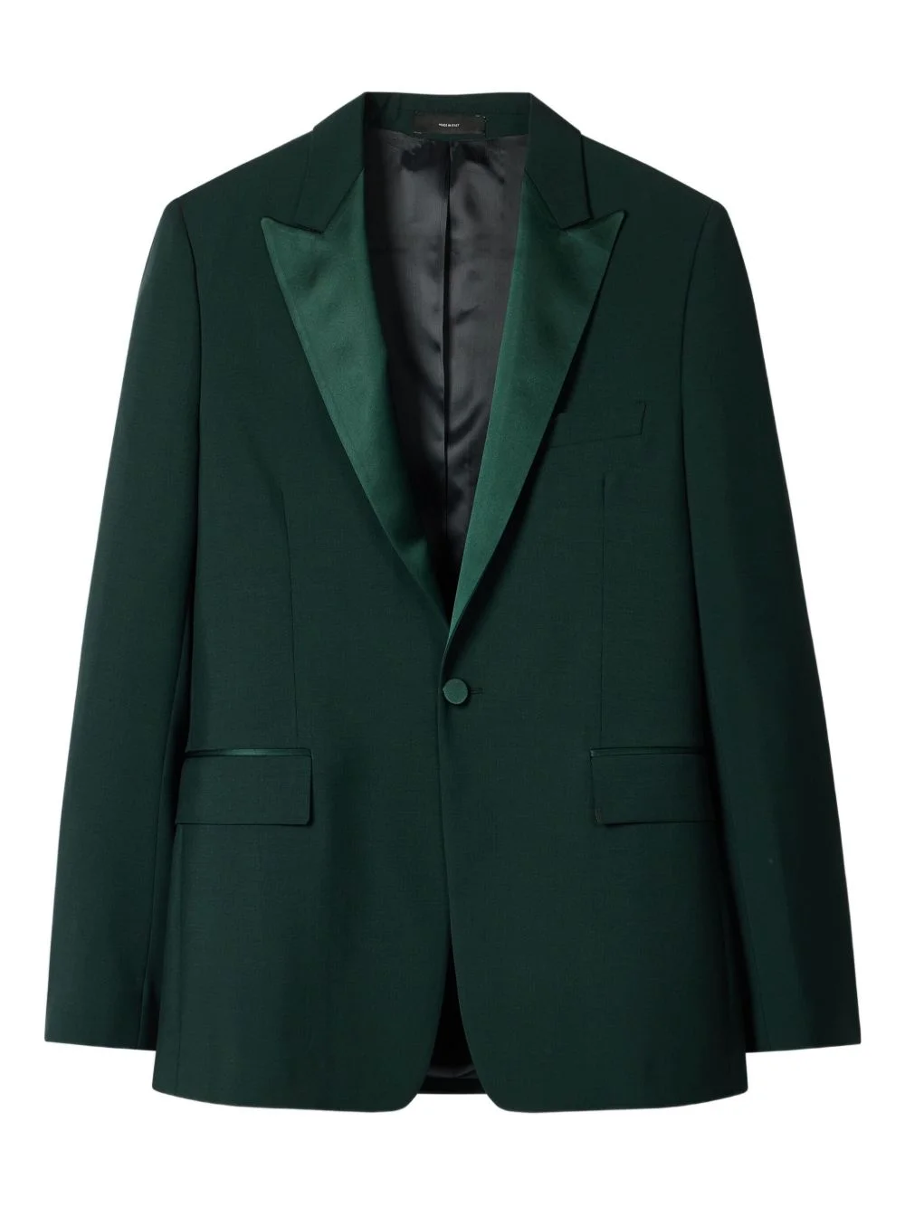 The Soho wool blazer Highlights - Bottle green - Satin lapel - Single button fastening - Welt pockets - Four button cuffs - Pocket square Made in Italy Composition Wool 84%, Mohair 16% Washing instructions Read Manufacturer Guidelines
