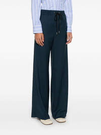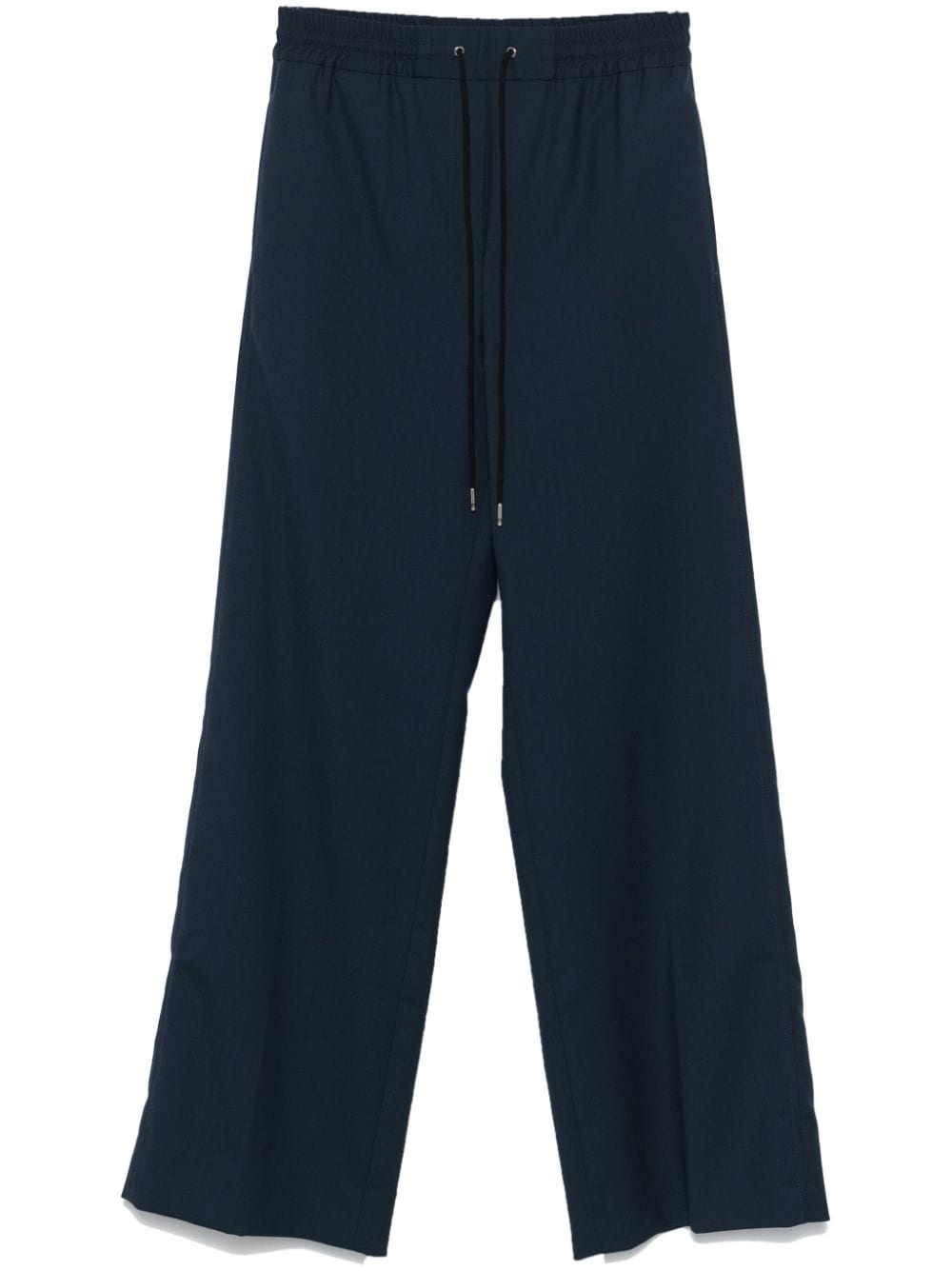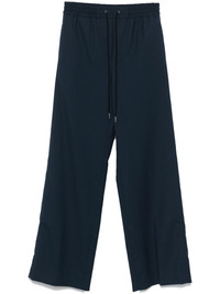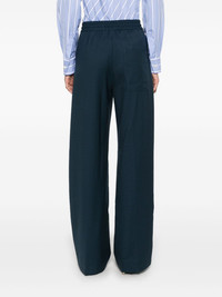wide-leg trousers Highlights - Navy blue - Wool - Twill weave - Elasticated drawstring waistband - Faux-fly - Two side inset pockets - Pressed crease - Rear patch pocket - Wide leg Made in Italy Composition Lining: Cotton 100%, Cupro 100% Outer: Wool 100% SIZE & FIT Model measurements Height 5 ft 10 in(1.77 m) Bust/Chest 30.7 in(78 cm) Hips 35.03 in(89 cm) Waist 23.62 in(60 cm) FittingInformation Designed with a wide-leg cut, these trousers allow for a close fit at the waist and offer a loose and roomy fit over the leg The elasticated waist allows for a comfortable fit Made from a midweight non-stretch fabric
