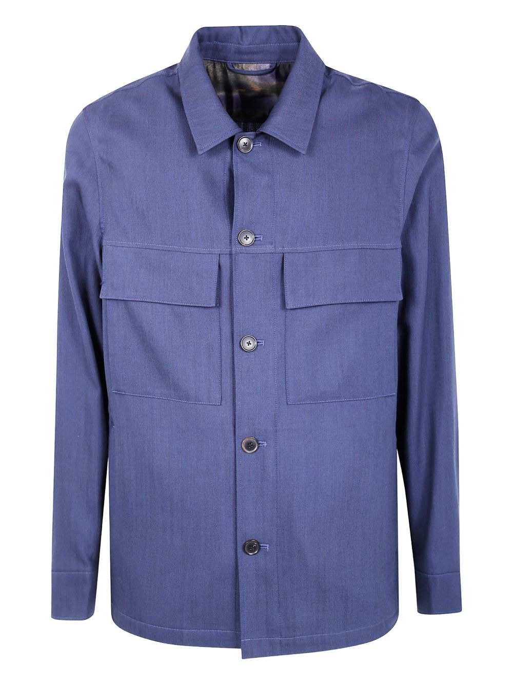 wool shirt jacket Highlights - Blue - Front button fastening - Point collar - Long sleeves - Chest flap pockets - Buttoned cuffs Imported Composition Wool 100% Washing instructions Read Manufacturer Guidelines