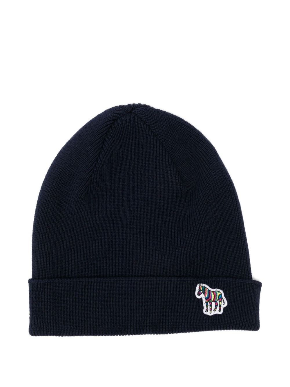 zebra-applique wool beanie Highlights - Navy blue - Turn-up brim - Ribbed knit Made in United Kingdom Composition Wool 100%