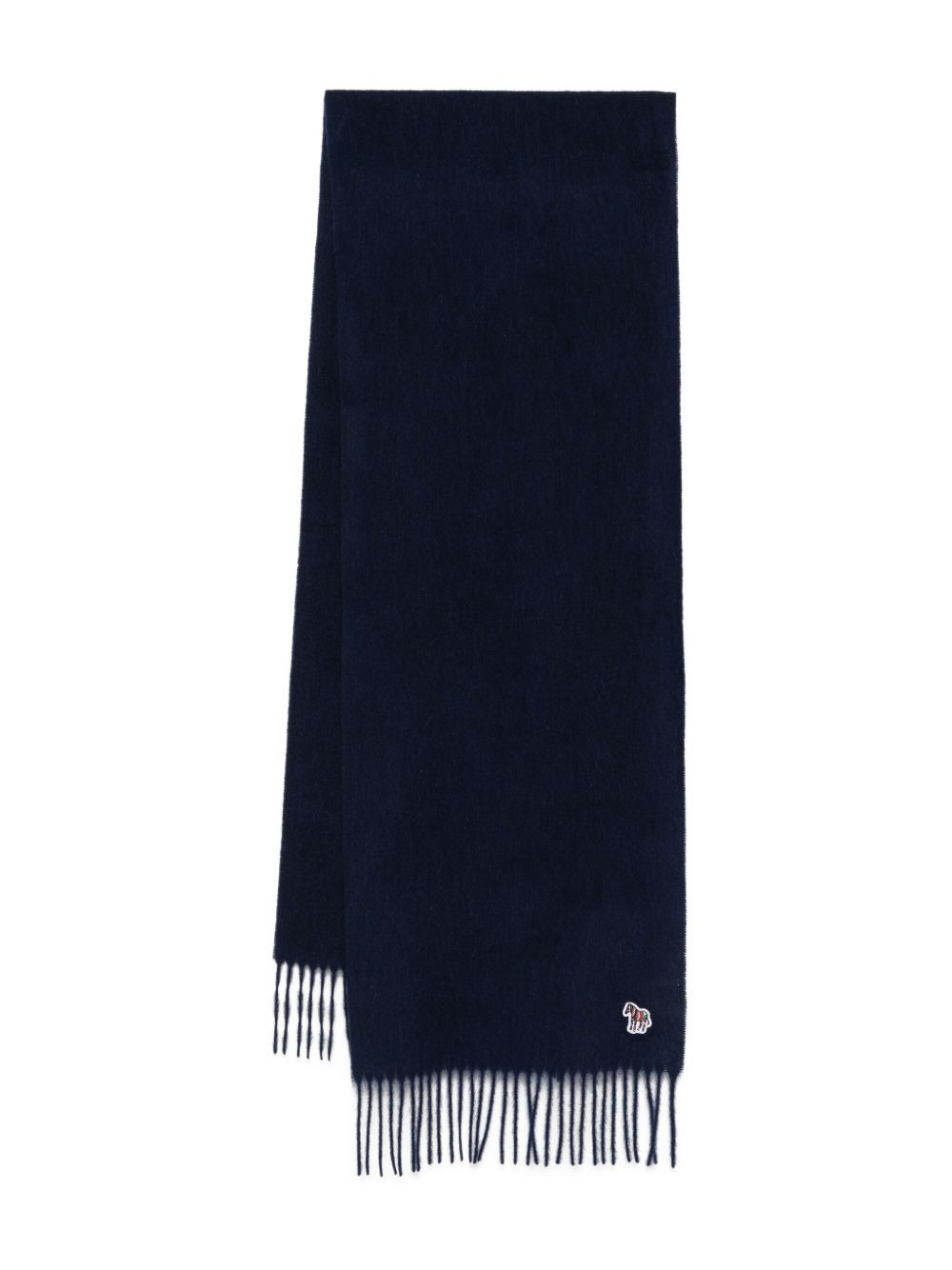 zebra-embroidered scarf Highlights - Navy blue - Wraparound style - Fringed edge Made in United Kingdom Composition Wool 100% SIZE & FIT Measurement LENGTH 70.86 in(180 cm) WIDTH 12.59 in(32 cm) Washing instructions Dry Clean Only