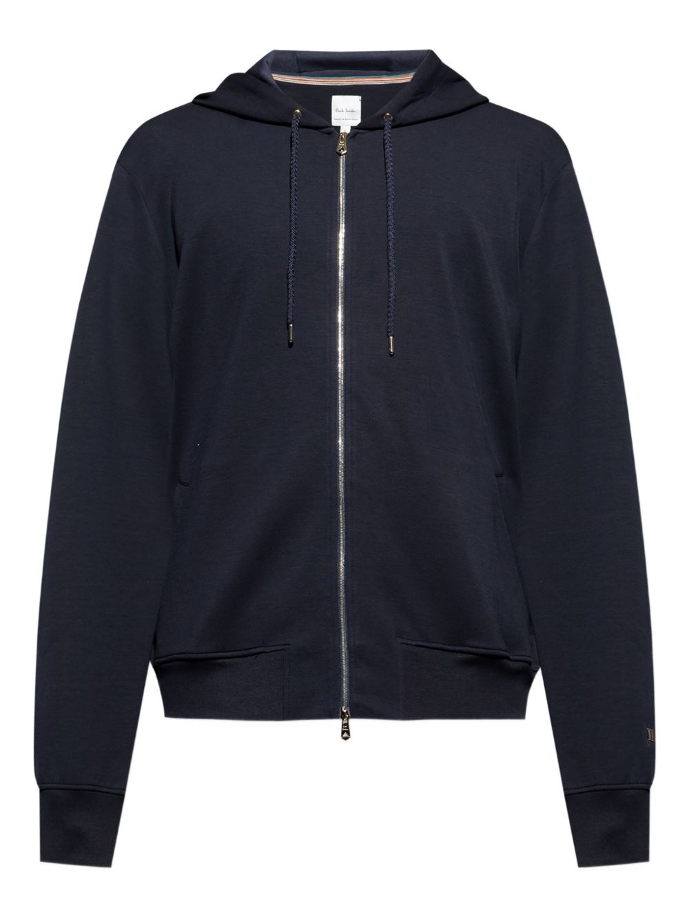 zip-up hoodie Highlights - Navy blue - Hooded neckline - Zip fastening - Ribbed cuffs - Signature-stripe detail Imported Composition Lyocell 62%, Cotton 32%, Elastane 6% Washing instructions Read Manufacturer Guidelines