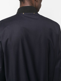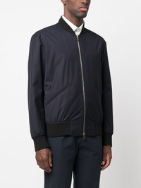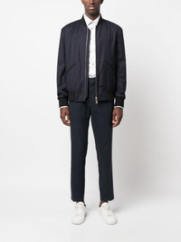 zip-up wool bomber jacket Highlights - Navy blue - Wool - Gold-tone hardware - Baseball collar - Front zip fastening - Long sleeves - Straight hem - Two front welt pockets - Ribbed trim Made in Italy Composition Wool 100% SIZE & FIT Model measurements Height 6 ft 0 in(1.84 m) Bust/Chest 36.22 in(92 cm) Hips 35.43 in(90 cm) Waist 26.77 in(68 cm) FittingInformation Designed for a relaxed fit, this piece allows for comfort and movement when worn The ribbed hem offers a close, comfortable fit Made from a midweight non-stretch fabric This piece fits true to size – take your usual size