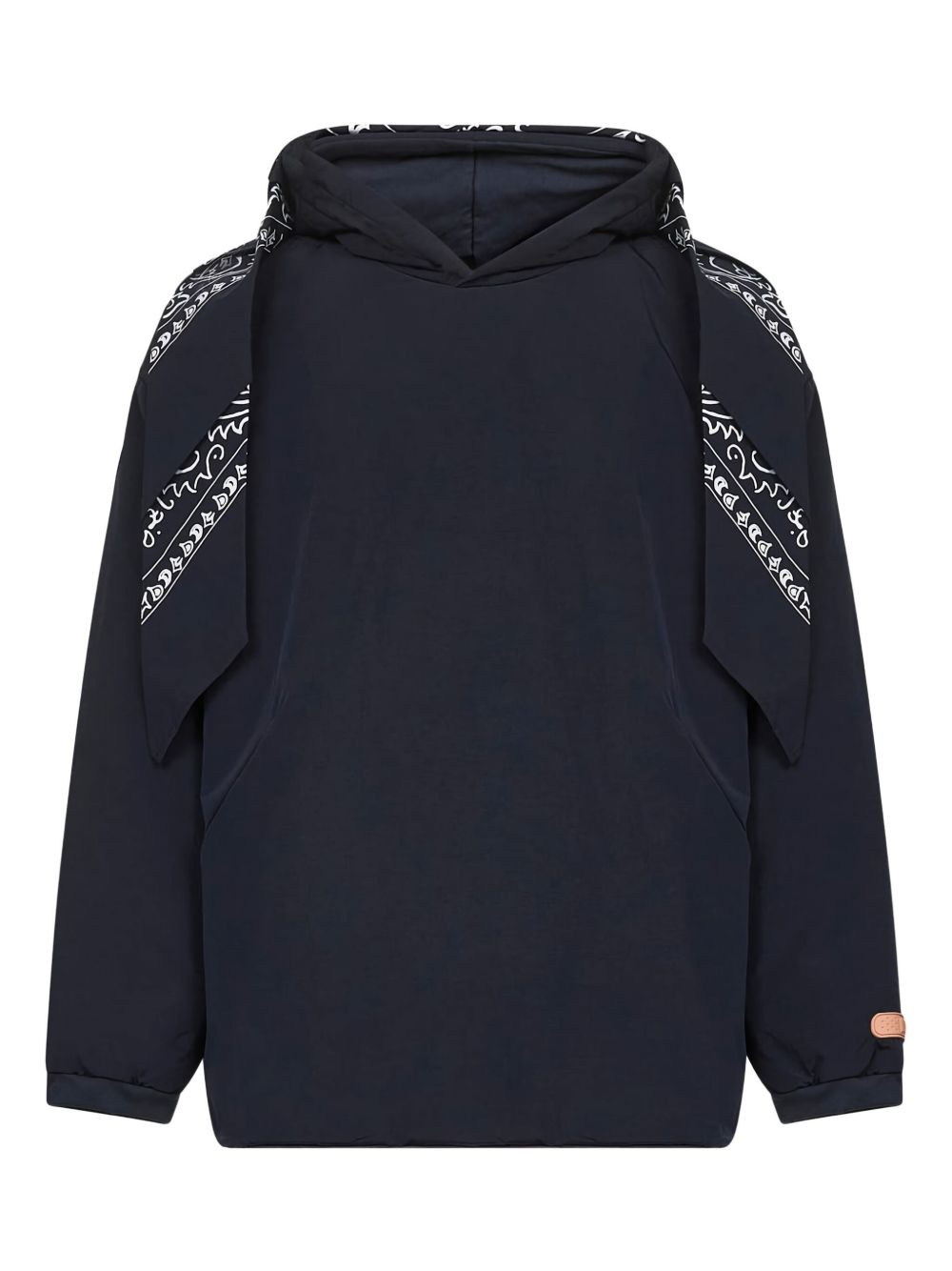 bandana-print hooded sweater Highlights - Navy blue - Hooded - Bandana print scarf - Elasticated cuffs Made in Italy Composition Polyester 46%, Polyamide 33%, Cotton 21% Washing instructions Read Manufacturer Guidelines