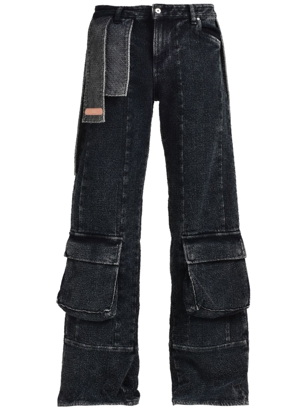 boucle wide-leg jeans Highlights - Blue - Cotton blend - Denim - Boucle design - Front button and zip fastening - Belt loops - Classic five pockets - Multiple cargo pockets - Wide leg - Logo patch to the rear Imported Composition Cotton 90%, Polyester 5%, Polyamide 4%, Other fibres 1%