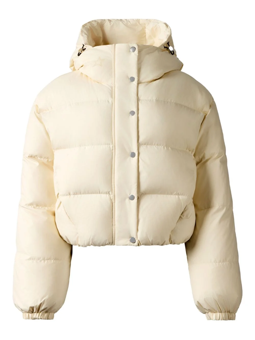 cropped puffer jacket Highlights - Cream - Drawstring hood - Press-stud fastening - Logo detail - Drawstring hem - Elasticated cuffs Made in Italy Composition Outer: Polyester 100% Lining: Polyester 100%, Duck Down 90%, Feather 10% Washing instructions Read Manufacturer Guidelines