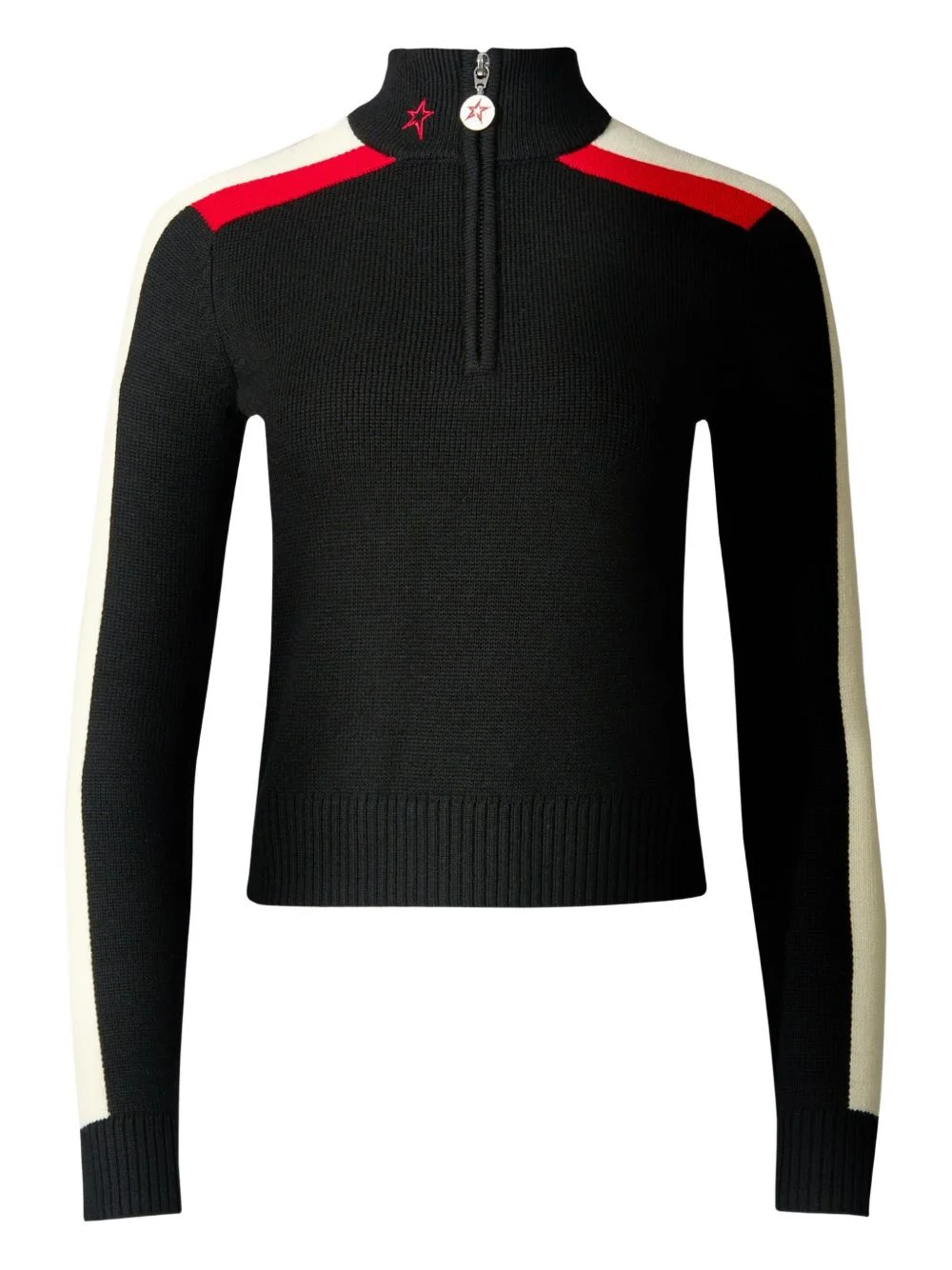 half-zip sweater Highlights - Black - Star detail - Zip fastening - Long sleeves - Stripe detail - High neck Imported Composition Merino 100% Washing instructions Read Manufacturer Guidelines