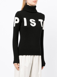 PISTE SWEATER II black wool knitted construction slogan print to the front ribbed detailing roll neck long sleeves straight hem Imported Composition Outer: Merino 100% SIZE & FIT Model measurements Height 5 ft 10 in(1.77 m) Bust/Chest 31.49 in(80 cm) Hips 34.64 in(88 cm) Waist 23.62 in(60 cm) FittingInformation This piece fits true to size. We recommend you get your regular size Cut for a slim fit Made with a mid-weight fabric Washing instructions Read Manufacturer Guidelines