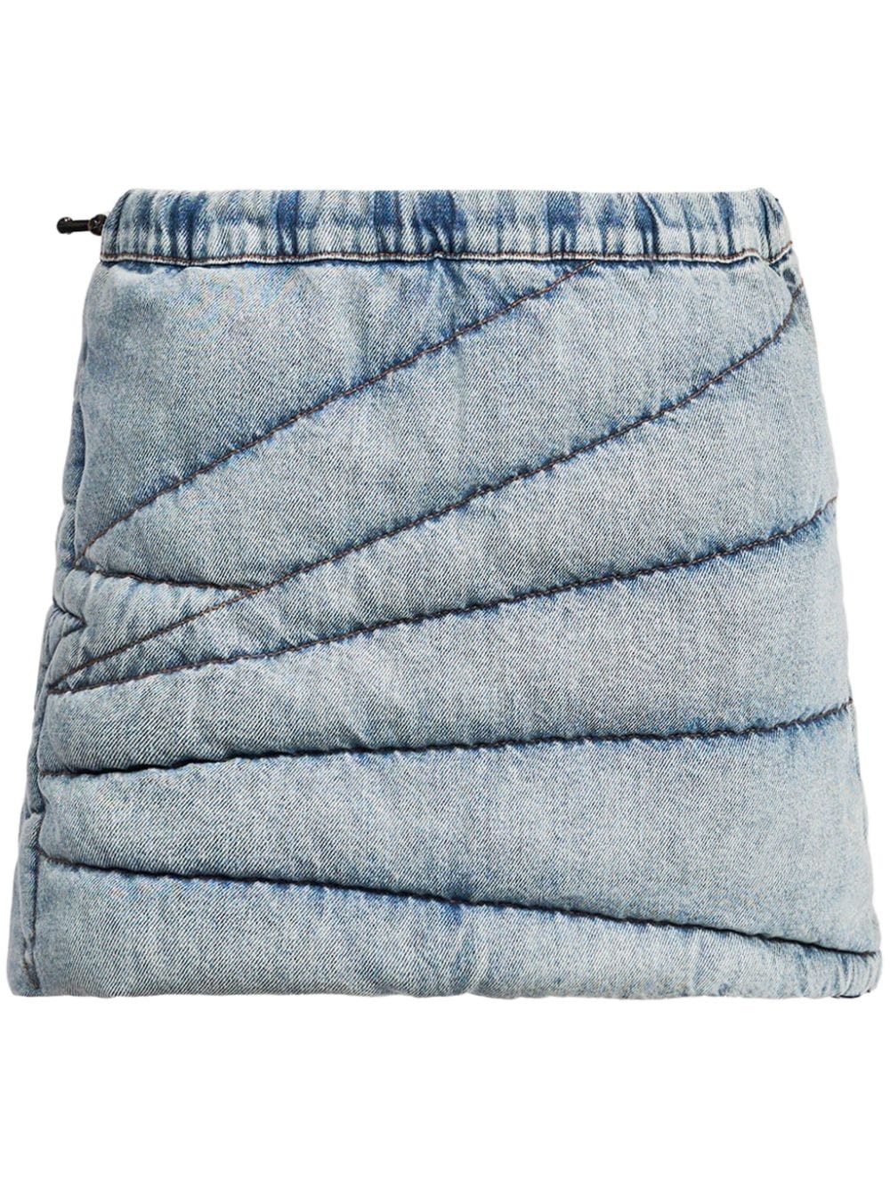 quilted mini skirt Highlights - Light blue - Cotton - Denim - Quilted - Elasticated waistband - Thigh-length - Straight hem Imported Composition Lining: Polyester 65%, Cotton 35% Outer: Cotton 100% Washing instructions Hand Wash