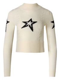 star-embellished cable-knit sweater Highlights - White - Star motif - Cable knit - High neck - Long sleeves - Ribbed hem Imported Composition Merino 100% Washing instructions Read Manufacturer Guidelines