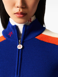 stripe-detail sweater Highlights - Surf blue - Short front zip fastening - Star detail - Ribbed hem - Stripe detail - High neck Imported Composition Merino 100% Washing instructions Read Manufacturer Guidelines