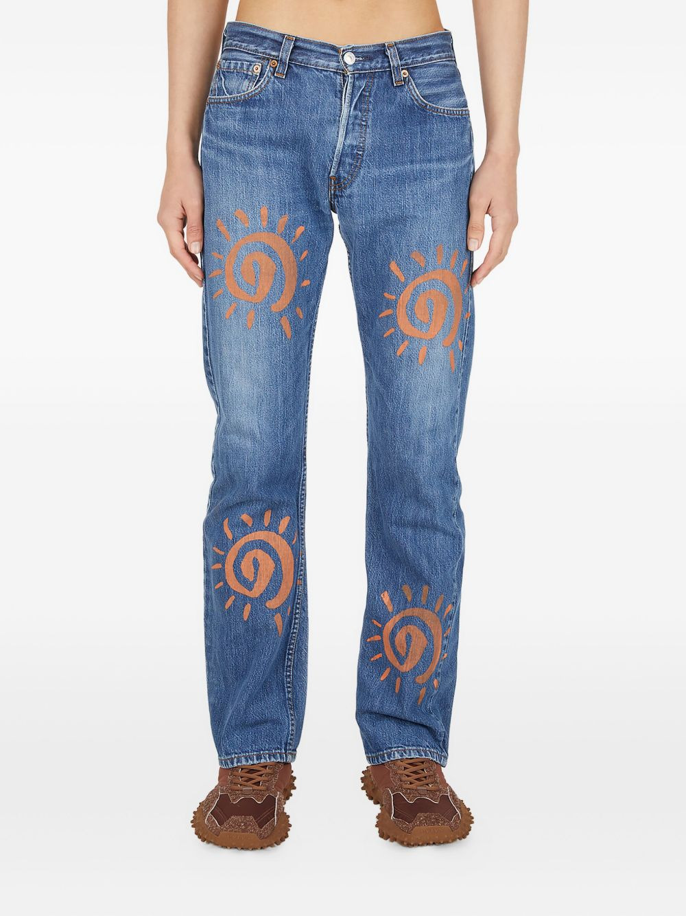 graphic-motif jeans Highlights - Blue - Cotton denim - Concealed fly fastenings - Five pocket design - All-over graphic motif Made in United States Composition Cotton 100% Washing instructions Read Manufacturer Guidelines