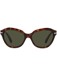 cat eye-frame sunglasses havana-brown tortoiseshell effect grey tinted lenses sculpted arms straight tips We know you'll look after them, but these glasses come with protection, just in case. Made in Italy Composition Outer: Acetate 100% SIZE & FIT Measurement Arm Length 5.51 in(14 cm) Bridge Width 0.66 in(1.7 cm) Lens Diameter 2.12 in(5.4 cm)
