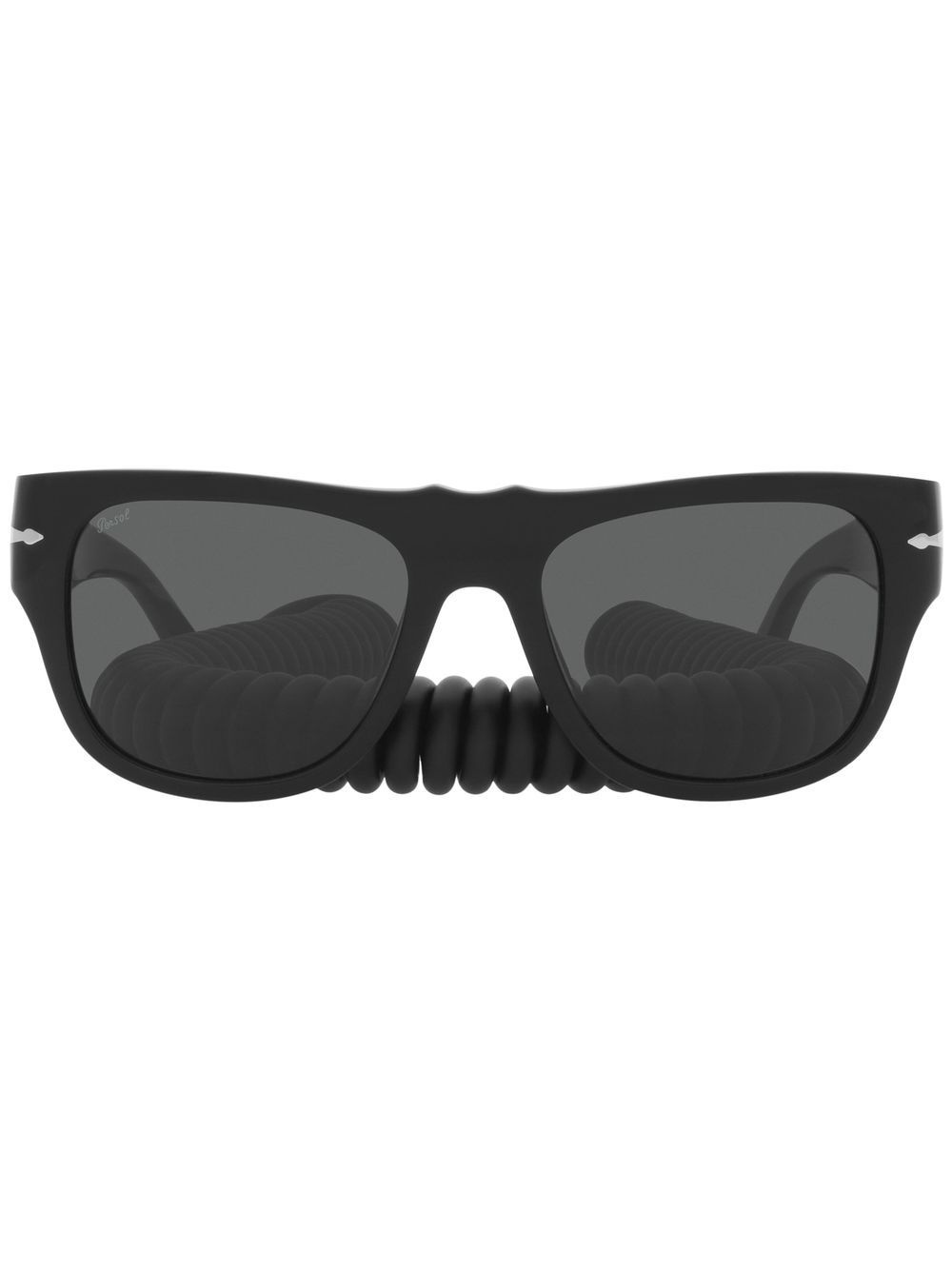 Pinnacle logo-print sunglasses jet black acetate logo print at the arm wayfarer frame grey tinted lenses nose pads straight arms curved tips detachable neck strap UV-protective lenses These glasses come with a protective case. Made in United States Composition Acetate 100%