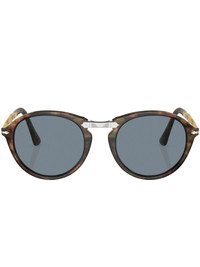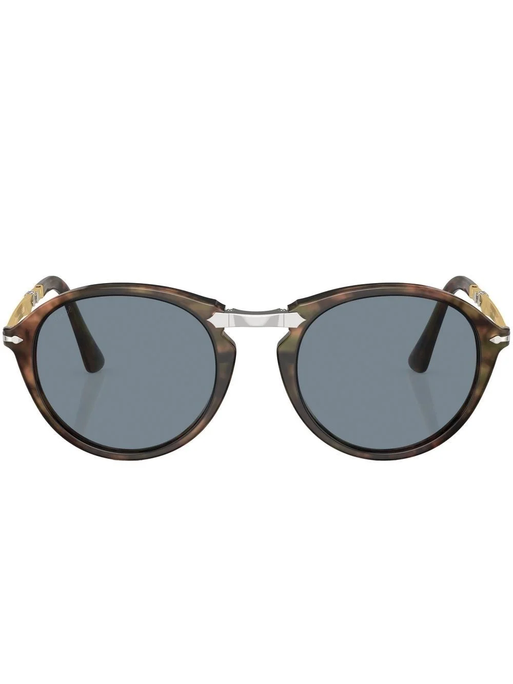 round-frame sunglasses brown/gold-tone acetate/metal round frame tinted lenses straight arms These glasses come with a protective case. Made in United States Composition Metal 100%, Acetate 100%