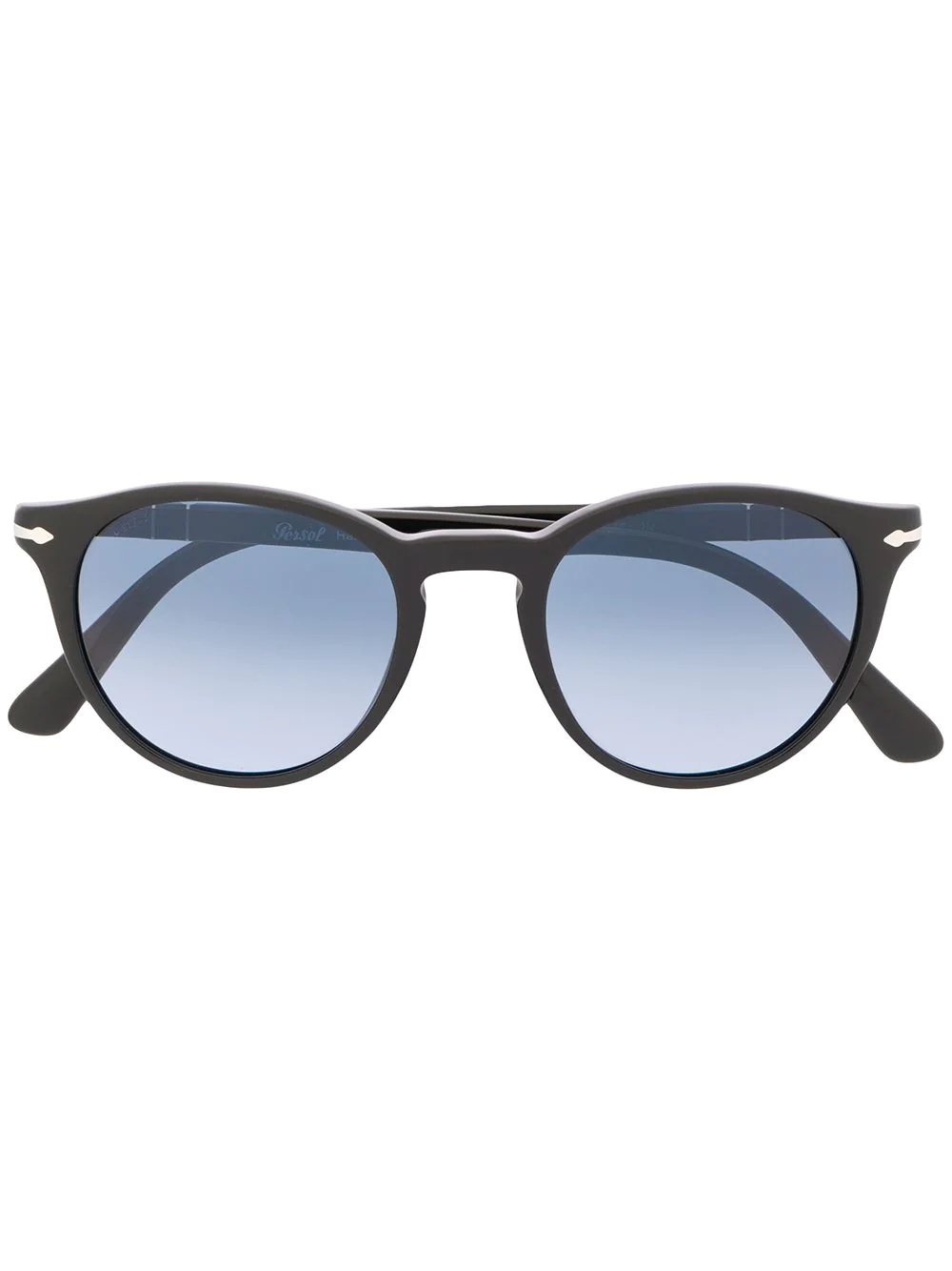 round frame sunglasses Black round frame sunglasses from Persol featuring silver-tone hardware, gradient lenses and straight arms with angled tips. This item comes with a protective case. Made in Italy Composition Acetate 100% SIZE & FIT Measurement Arm Length 57.08 in(145 cm) Bridge Width 7.87 in(20 cm) Lens Diameter 19.29 in(49 cm) TOTAL LENGTH 53.14 in(135 cm)