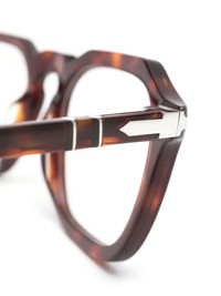 tortoiseshell square-frame eyeglasses Persol explains that the world of cinema was the starting reference point in creating this pair of square-frame eyeglasses. This pair boasts a tortoiseshell frame inspired by vintage films and stands out thanks to its strong geometric lines. Made in Italy Composition Acetate 100% SIZE & FIT Measurement Arm Length 5.7 in(14.5 cm) Bridge Width 0.82 in(2.1 cm) Lens Diameter 1.88 in(4.8 cm) Total Width 5.27 in(13.4 cm)