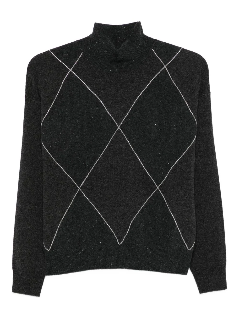 diamond-pattern high-neck sweater Highlights - Grey - High neck - Diamond pattern - Long sleeves Made in Italy Composition Virgin Wool 57%, Silk 26%, Cashmere 13%, Viscose 4% SIZE & FIT Model measurements Height 5 ft 11 in(1.8 m) Bust/Chest 31.49 in(80 cm) Hips 36.61 in(93 cm) Waist 24.4 in(62 cm) Washing instructions Hand Wash