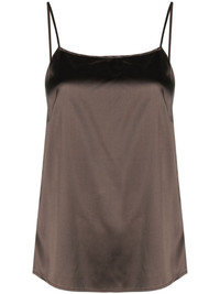 satin-weave tank top Highlights - Chocolate brown - Stretch-silk - Satin weave - Round neck - Spaghetti straps - Sleeveless - Straight hem Made in Italy Composition Silk 97%, Spandex/Elastane 3% Washing instructions Machine Wash