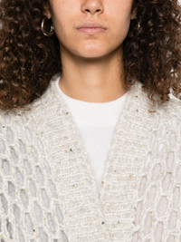 sequin-embellished open-knit cardigan