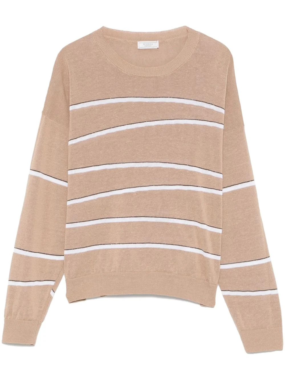 striped sweater Highlights - Brown - Crew neck - Long sleeves - Side slits - Ribbed cuffs and hem Made in Italy Composition Linen/Flax 58%, Cotton 39%, Viscose 3% SIZE & FIT Model measurements Height 5 ft 10 in(1.78 m) Bust/Chest 33.46 in(85 cm) Hips 36.22 in(92 cm) Waist 23.22 in(59 cm) FittingInformation Designed for a relaxed fit, this piece allows for comfort and movement when worn Made with a midweight knit, this piece offers some stretch Washing instructions Dry Clean Only