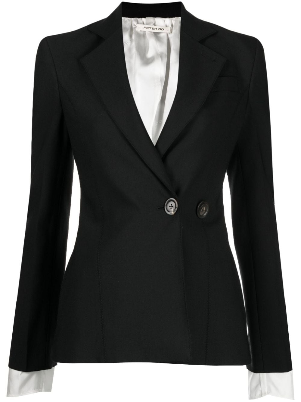 contrast-stitching notched-lapels blazer Highlights - Black - Contrast stitching - Notched lapels - Front button fastening - Long sleeves - Straight hem Made in Italy Composition Body: Polyester 53%, Virgin Wool 43% SIZE & FIT Model measurements Height 5 ft 10 in(1.78 m) Bust/Chest 30.31 in(77 cm) Hips 34.64 in(88 cm) Waist 24.01 in(61 cm) FittingInformation Designed for a slim fit that sits just away from the body offering a close yet comfortable fit The internal shoulder pads offer a structured shape Made from a midweight non-stretch fabric This piece fits true to size – take your usual size