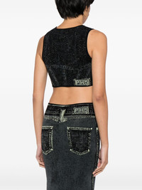 Lillian denim-print crop top Highlights - Black/green - Denim print - Logo print to the rear - Round neck - Sleeveless - Cropped - Straight hem Imported Composition Recycled Viscose 70%, Recycled Rayon 18%, Polyester 10%, Spandex/Elastane 2% SIZE & FIT Model measurements Height 5 ft 10 in(1.77 m) Bust/Chest 31.49 in(80 cm) Hips 35.43 in(90 cm) Waist 25.19 in(64 cm) FittingInformation Designed for a close fit throughout Cropped in length Made with a midweight knit, this piece offers some stretch This piece fits true to size – take your usual size