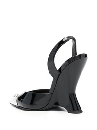 105mm patent-leather sandals Highlights - Black/silver-tone - Calf leather - Patent finish - Slip-on style - High wedge heel - Ankle strap - Branded insole - Pointed toe - Skull charm - Crystal embellishment Made in Italy Composition Outer: Patent Calf Leather 100% Lining: Calf Leather 100% Sole: Calf Leather 100% SIZE & FIT Measurement HEEL 4.13 in(10.5 cm)