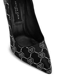 120mm Decollete pumps Highlights - Jet black - Satin weave - Monogram pattern - Rhinestone embellishment - Pointed toe - Slip-on style - Branded leather insole - 120mm stiletto heel - Leather sole Made in Italy Composition Outer: Viscose 72%, Silk 28% Lining: Sheepskin 100% Sole: Calf Leather 100% SIZE & FIT Measurement HEEL 4.72 in(12 cm)