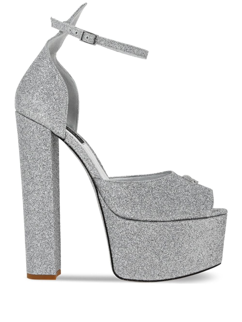 120mm glitter-detailing leather sandals Highlights - Silver-tone - Calf leather/cotton blend - Glitter detailing - Open toe - Buckle-fastening ankle strap - 120mm block heel - Platform sole Made in Italy Composition Cotton 100%