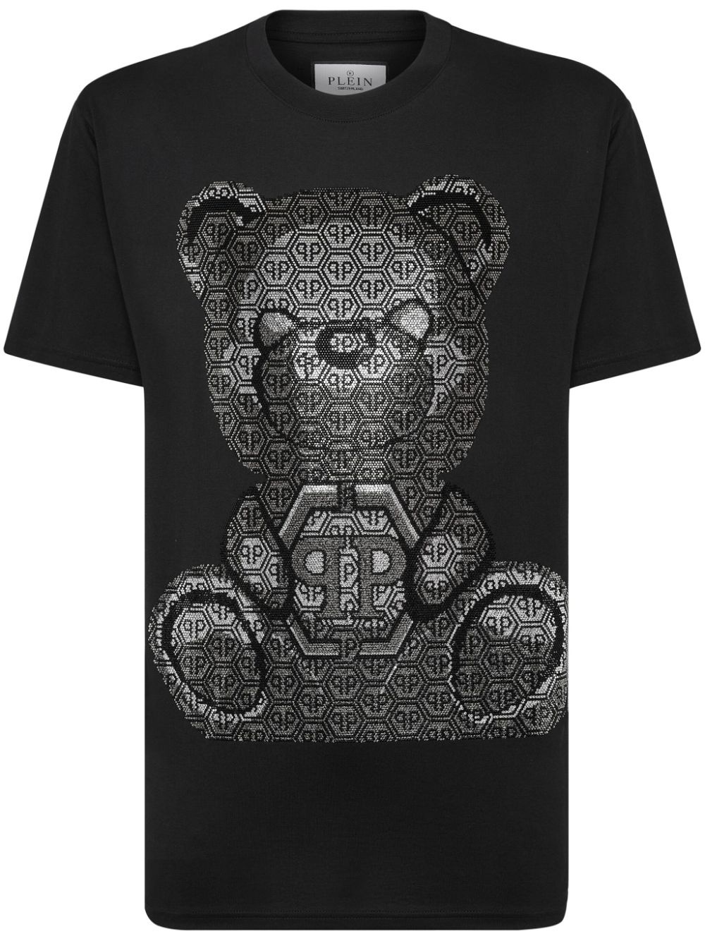 3D Teddy embellished T-shirt Highlights - Black - Cotton - Jersey texture - Teddy bear print - Rhinestone embellishment - Silver-tone logo plaque - Crew neck - Short sleeves - Straight hem Imported Composition Cotton 100% Washing instructions Read Manufacturer Guidelines