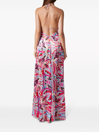 abstract-print V-neck maxi dress Highlights - Multicolour - Abstract pattern print - Lace trim - Plunging v-neck - Halterneck tie fastening - Sleeveless - Low back - Floor-length Imported Composition Fabric 100%