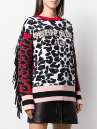 animal print fringed jumper