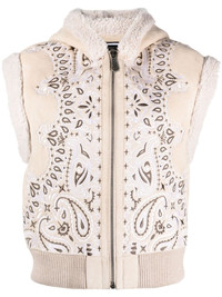 bandana-print sleeveless jacket Contemporary yet timeless, this jacket from Philipp Plein features an innovative sleeveless silhouette and a creative all-over bandana print. Highlights - Beige - Bandana print - Classic hood - Sleeveless - Front zip fastening Imported Composition Leather 100% SIZE & FIT Model measurements Height 5 ft 10 in(1.77 m) Bust/Chest 32.28 in(82 cm) Hips 35.03 in(89 cm) Waist 25.19 in(64 cm) Washing instructions Specialist Cleaning