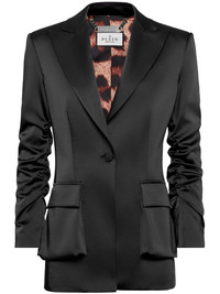 Basic Superheroine blazer Highlights - Black - Front button fastening - Two side cargo pockets - Peak lapels - Draped detailing Made in Italy Composition Outer: Polyester 100% Lining: Viscose 100%
