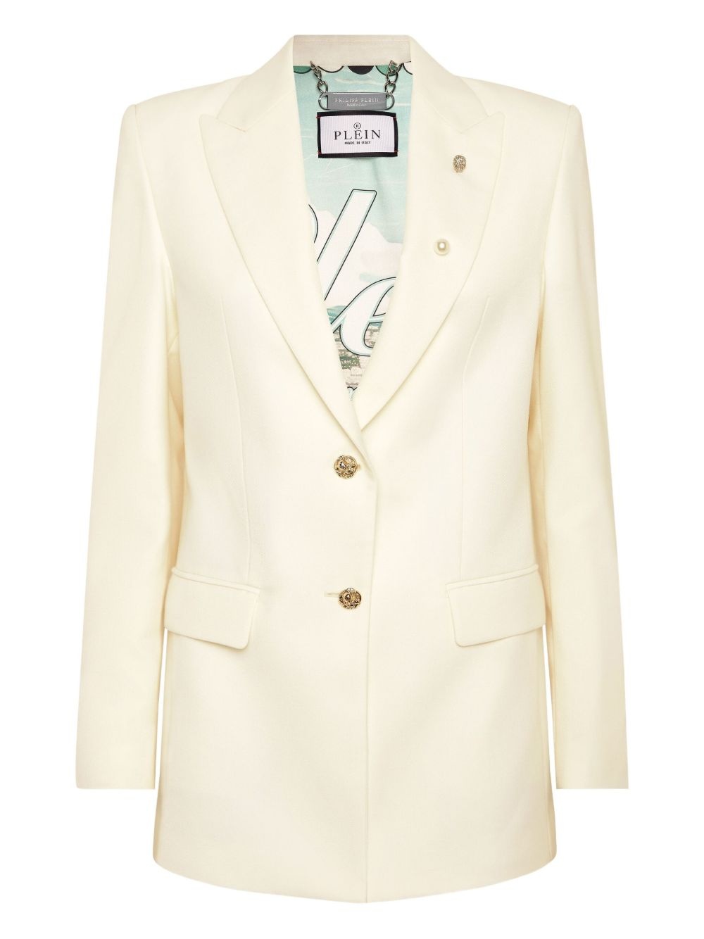 Boyfriend Fit blazer Highlights - White - Front button fastening - Notched lapels - Two side flap pockets - Brooch detail Made in Italy Composition Outer: Polyester 55%, Wool 45% Lining: Polyester 100%
