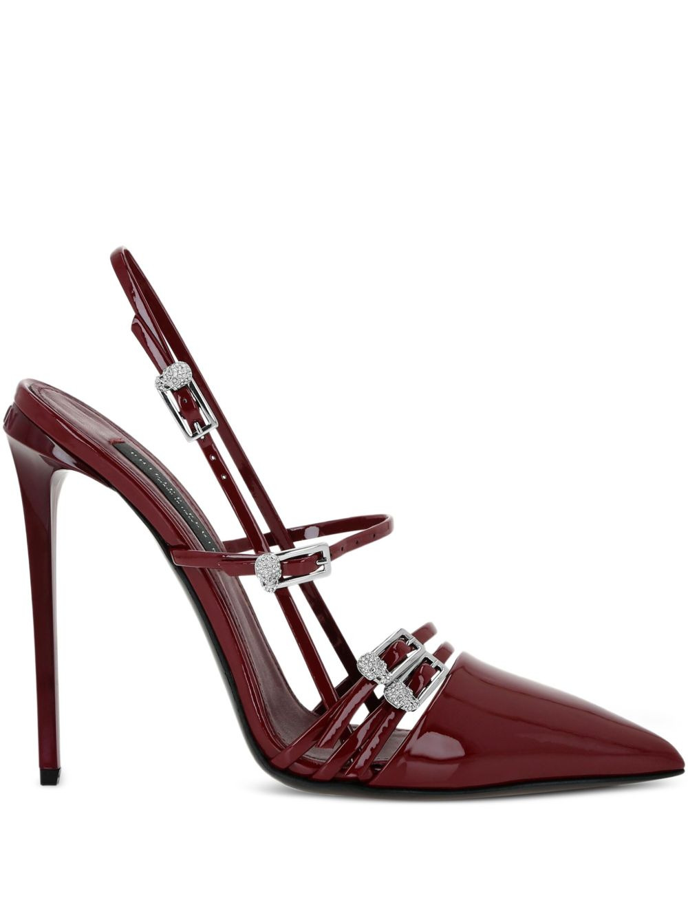 buckle-embellished slingback pumps Highlights - Burgundy - Patent leather - Slingback strap - Multiple straps - Buckle embellishments - High heel Made in Italy Composition Sole: Calf Leather 100% Lining: Calf Leather 100% Outer: Patent Calf Leather 100%