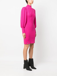 cable-knit high-neck dress Highlights - Fuchsia pink - Wool - Chunky cable knit - Silver-tone logo plaque - Ribbed detailing - High neck - Long sleeves - Straight hem - Knee-length Made in Italy Composition Wool 100% SIZE & FIT Model measurements Height 5 ft 11 in(1.8 m) Bust/Chest 31.49 in(80 cm) Hips 35.43 in(90 cm) Waist 24.4 in(62 cm) FittingInformation Designed for a close fit throughout Made with a midweight knit, this piece offers some stretch This piece fits true to size – take your usual size Washing instructions Machine Wash