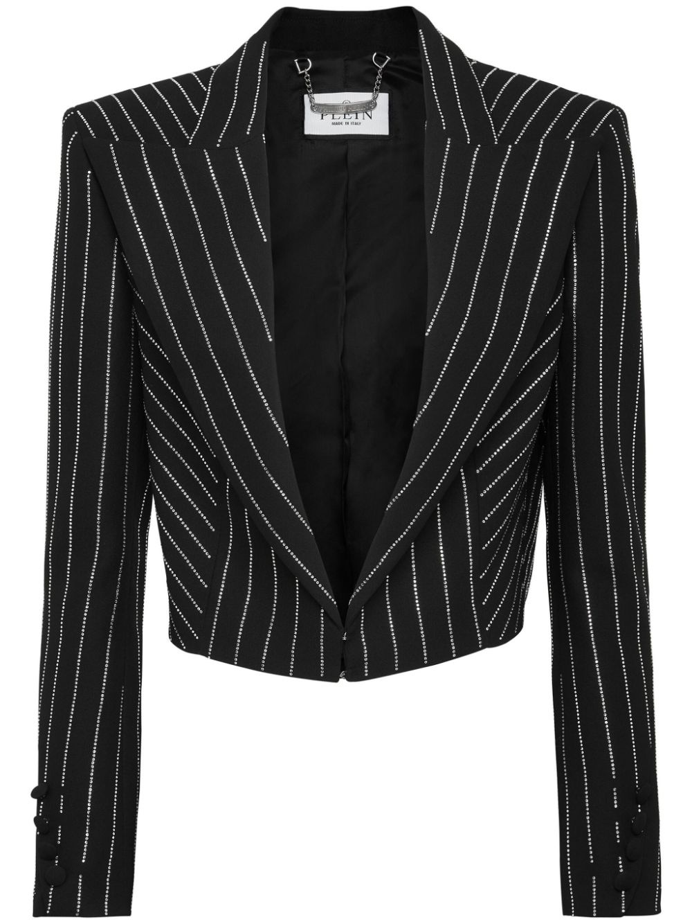 Cady crystal-embellished cropped blazer Highlights - Black - Pinstripe pattern - Crystal embellishment - Cropped - Wide notch lapels - Hook fastening - Long sleeves - Buttoned cuffs - Straight hem Made in Italy Composition Lining: Viscose 100% Outer: Viscose 51%, Acetate 46%, Elastane 3% Washing instructions Read Manufacturer Guidelines
