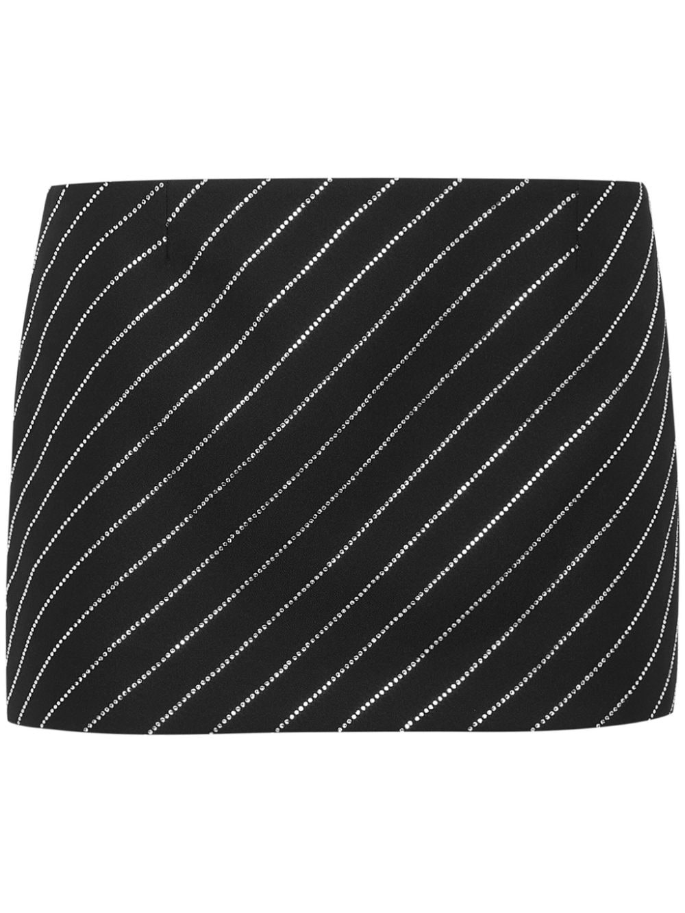 crystal-embellished pinstriped mini skirt Highlights - Black - Pinstripe pattern - Crystal embellishment - Concealed side zip fastening - Logo patch to the rear - Thigh-length - Straight hem Made In Italy Composition Outer: Viscose 51%, Acetate 46%, Spandex/Elastane 3% Lining: Viscose 100% Washing instructions Read Manufacturer Guidelines
