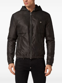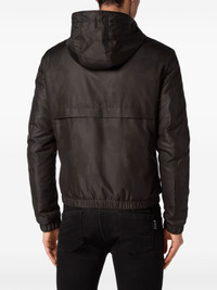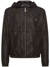 camouflage-print hooded jacket Highlights - Black - Camouflage pattern - Applique logo - Classic hood - Front zip fastening - Long sleeves - Slip pockets to the sides - Straight hem Made in Italy Composition Outer: Polyester 100% Lining: Viscose 51%, Acetate 49% Filling: Polyester 100%