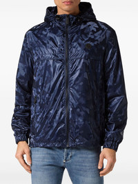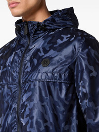 camouflage-print hooded windbreaker Showing Philipp Plein's bold aesthetic, this hooded windbreaker is decorated with a camouflage print all over. It is made of lightweight nylon construction featuring the brand's logo appliqued at the chest. Highlights - Blue - Applique logo - Camouflage print - Classic hood - High neck - Front zip fastening - Two side zip-fastening pockets - Long sleeves - Elasticated cuffs - Elasticated hem Imported Composition Nylon 100%